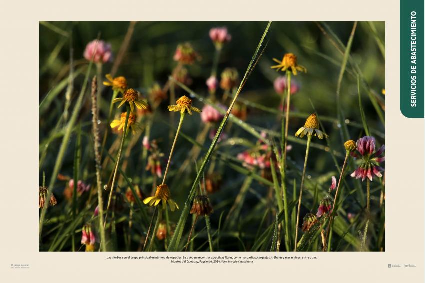 Las hierbas son el grupo principal en número de especies. Se pueden encontrar atractivas flores, como margaritas, carquejas, tréboles y macachines, entre otras. Montes del Queguay, Paysandú. 2014. Foto: Marcelo Casacuberta