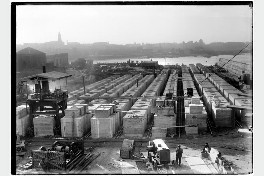 Obras de construcción de Rambla Sur. Al fondo el Parque Hotel. 1923 - 1935 (aprox.). (Foto: 18797FMHGE.CMDF.IMM.UY - Autor: S.d./IM)