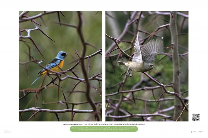 Naranjero (Rauenia bonariensis). Foto a: ejemplar macho, Santa Lucía, Canelones. Foto b: ejemplar hembra, Santa Lucía, Canelones.