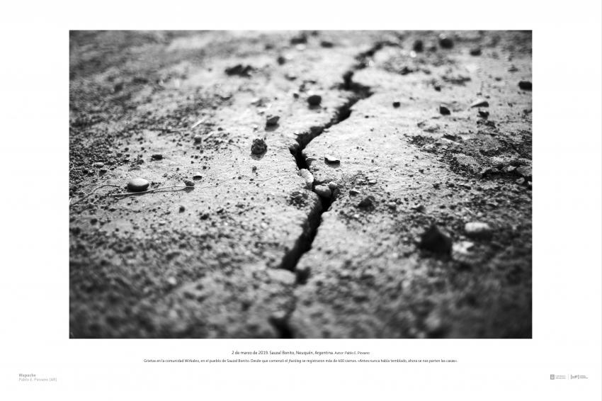 2 de marzo de 2019. Sauzal Bonito, Neuquén, Argentina. Autor: Pablo E. Piovano. Grietas en la comunidad Wirkaleo, en el pueblo de Sauzal Bonito. Desde que comenzó el fracking se registraron más de 400 sismos. «Antes nunca había temblado, ahora se nos parten las casas».
