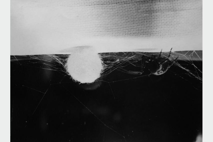 Latrodectus Mactans (conocido como “Araña del lino”). Construcción de la ooteca. Año 1958. Plácido Añón/ ICUR.