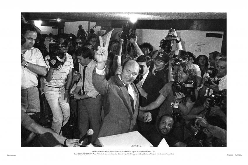 Alberto Zumarán. Elecciones nacionales. Sin datos de lugar. 25 de noviembre de 1984. (Foto: 0167_41FPCT.CDF.IMO.UY - Autor: Fotógrafo de la agencia Camaratres - Donación: Cyro Giambruno y José Luis Sosa / Centro de Fotografía - Intendencia de Montevideo).