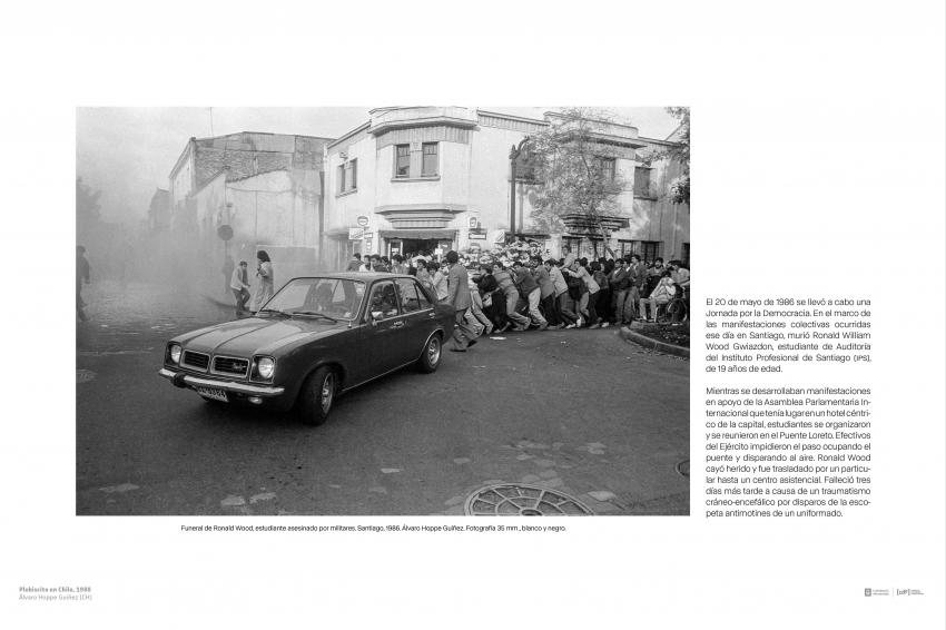 Funeral de Ronald Wood, estudiante asesinado por militares. Santiago, 1986. Álvaro Hoppe Guiñez. Fotografía 35 mm., blanco y negro.