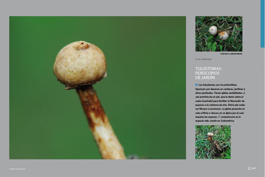 Aparacen por decenas en canteros, jardines y otros pastizales. Tienen gleba «estipitada», o sea provista de un pie, que la eleva sobre el suelo (sustrato) para facilitar la liberación de esporas a la columna de aire. Dicho pie suele ser fibroso o escamoso. La gleba presenta un solo orificio o «boca» en su ápice por el cual expulsa las esporas. T. cyclophorum es la especie más común en Sudamérica.