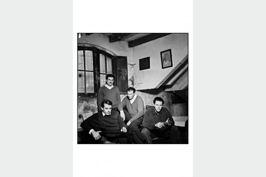 De izquierda a derecha Carlos Llanos, Arquibaldo Almada, Jorge y Rodolfo Visca. Taller Sótano Sur. S/f. (12.1FPRA.CMDF.IMM.UY)
