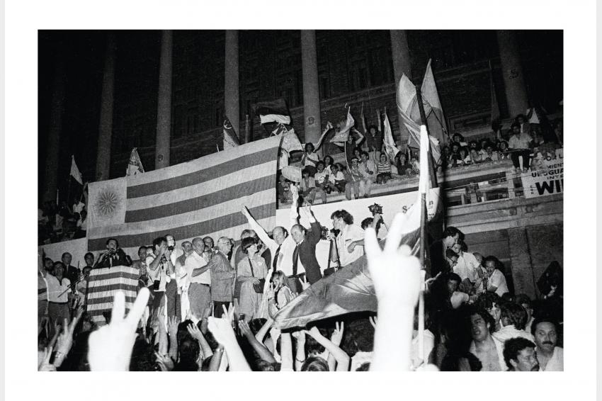 Acto en la Explanada Municipal horas después de la liberación de Wilson Ferreira. 30 de noviembre de 1984.