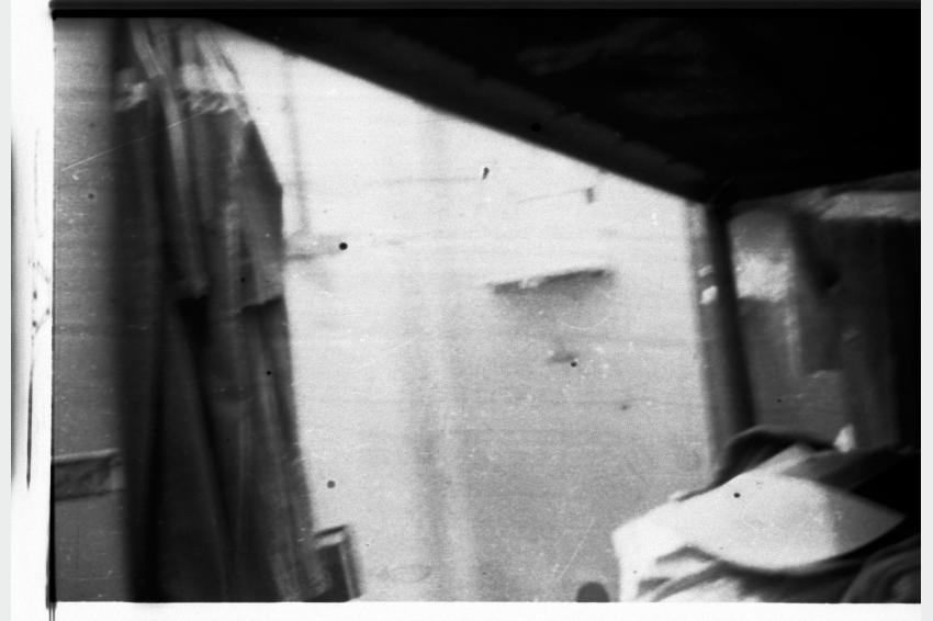 Desde la cabecera de la cucheta inferior hacia la puerta de la celda.