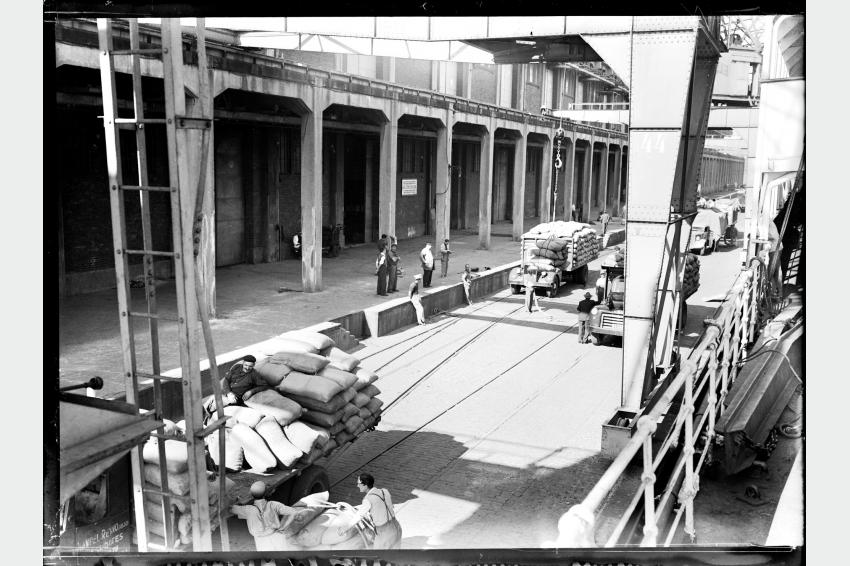 Carga de Espeller de lino en el vapor “Tacoma”. 24 de agosto de 1951. (Foto: 1130ANP – Autor: José Santángelo).