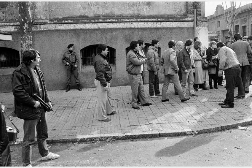 28 de Julio de 1987. La policía reconstruye un asesinato en la esquina de las calles Juan D. Jackson y Gonzalo Ramírez. A la derecha de la imagen, el presunto asesino.