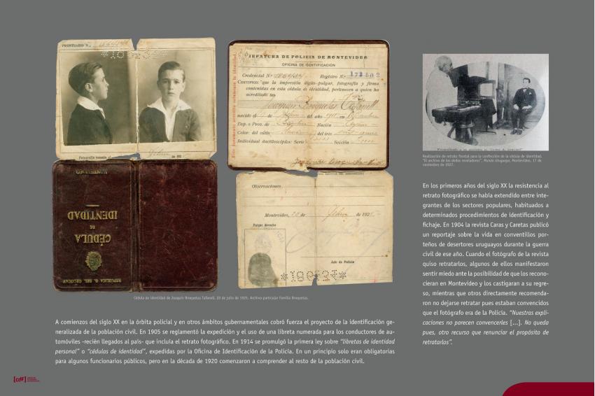 A comienzos del siglo XX en la órbita policial y en otros ámbitos gubernamentales cobró fuerza el proyecto de la identificación generalizada de la población civil. En 1905 se reglamentó la expedición y el uso de una libreta numerada para los conductores de automóviles -recién llegados al país- que incluía el retrato fotográfico. En 1914 se promulgó la primera ley sobre “libretas de identidad personal” o “cédulas de identidad”, expedidas por la Oficina de Identificación de la Policía. En un principio solo eran obligatorias para algunos funcionarios públicos, pero en la década de 1920 comenzaron a comprender al resto de la población civil.