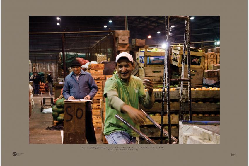 Puestos de venta del galpón rectangular del Mercado Modelo. Adelante, Waldemar Sosa y Ruben Prieto. 12 de mayo de 2011. 03:24 am. (Foto: 30552FMCMA.CMDF.IMM.UY)