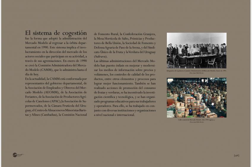 El sistema de cogestión fue la forma que adoptó la administración del Mercado Modelo al regresar a la órbita departamental en 1990. Este sistema implica el involucramiento en la dirección del mercado de los actores sociales que participan en su actividad, a través de sus agremiaciones. En enero de 1990 se creó la Comisión Administradora del Mercado Modelo (CAMM), que lo administra hasta el día de hoy.